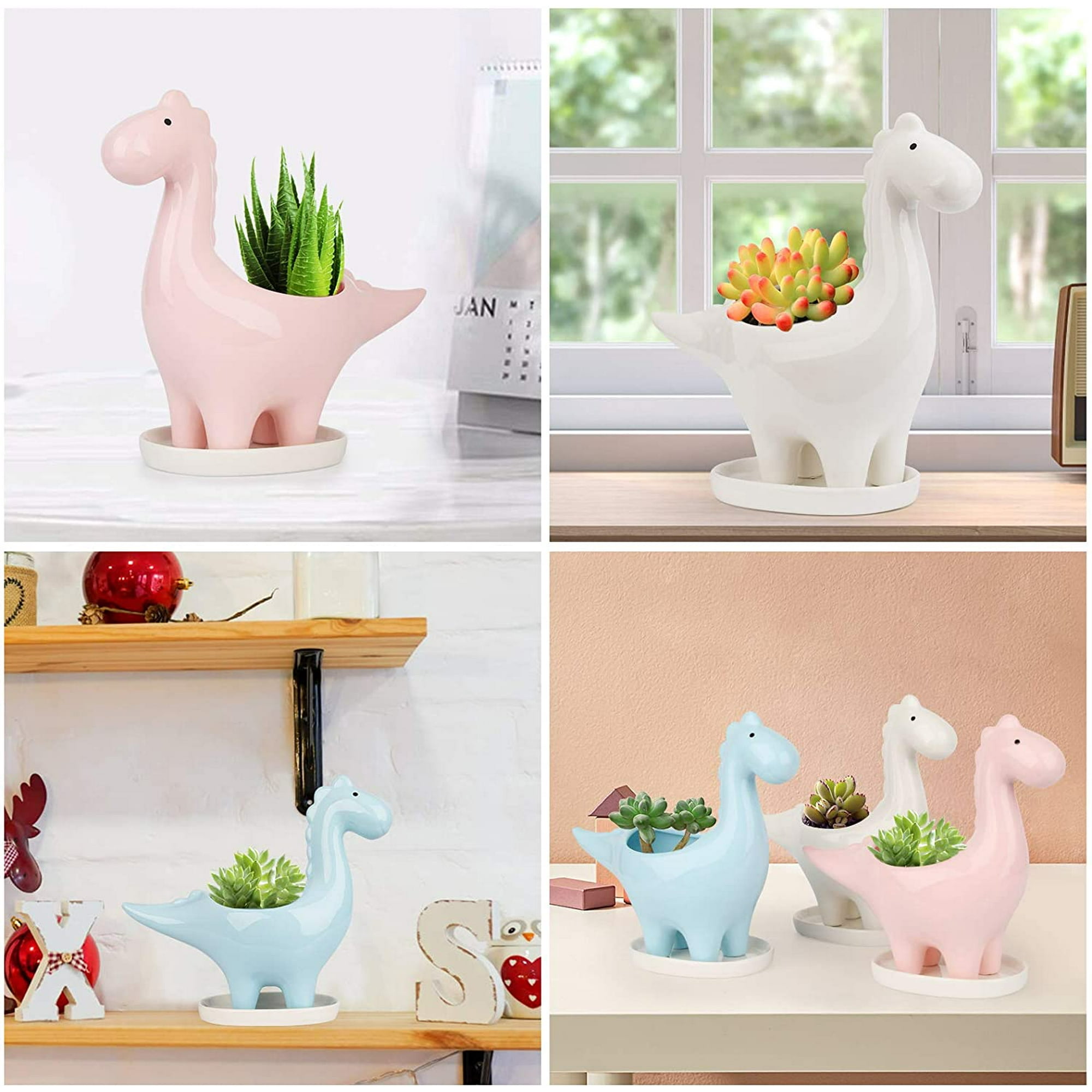 Kiaotime Dinosaur Shape White Ceramic Succulent Planters Pots Little Planter Flower Bonsai Dino Pots Vase Container Cactus Desktop Animal Decoration Pencil Holder Nursery Pots